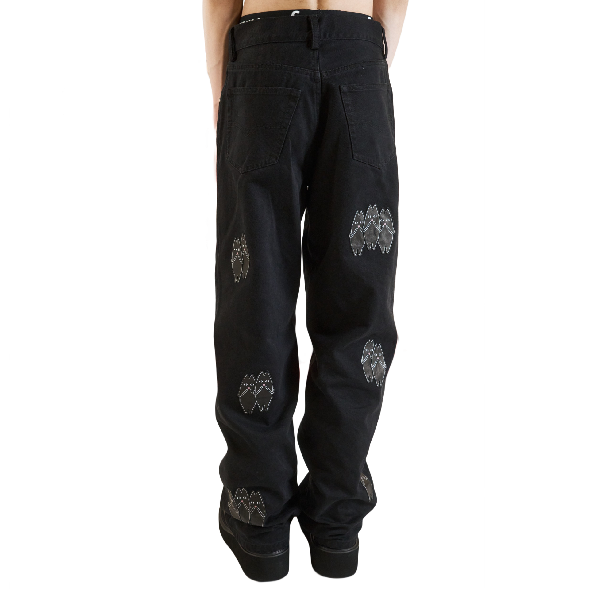 Black Leather Patches Denim