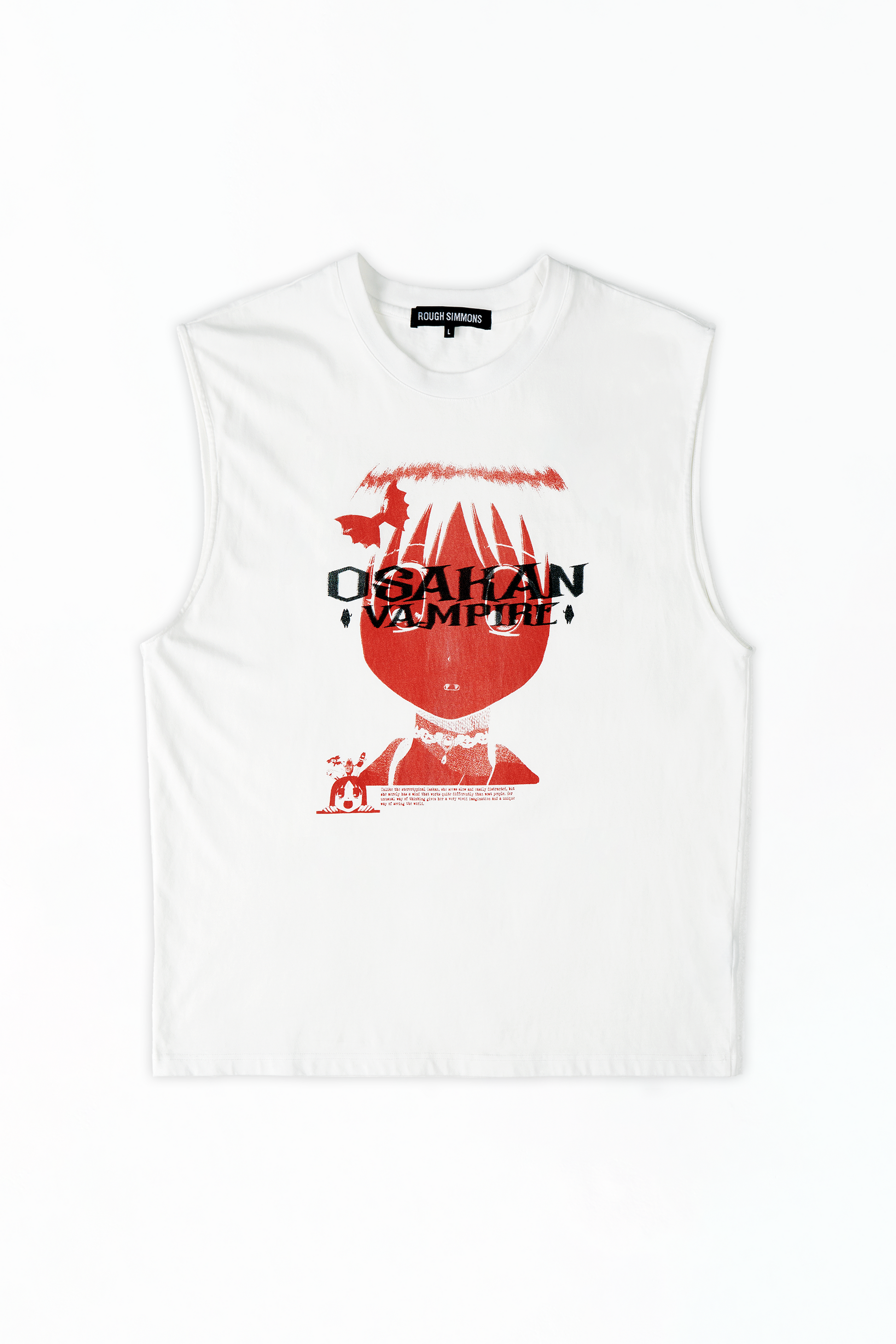 Two color screenprint heavyweight cotton tank in a relaxed with fitting cut.