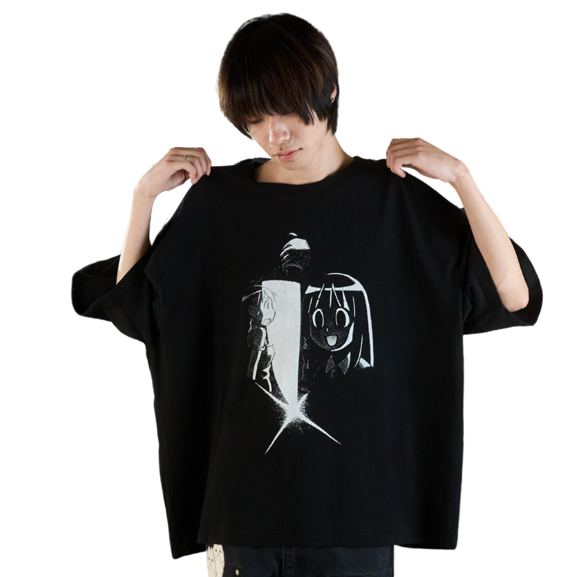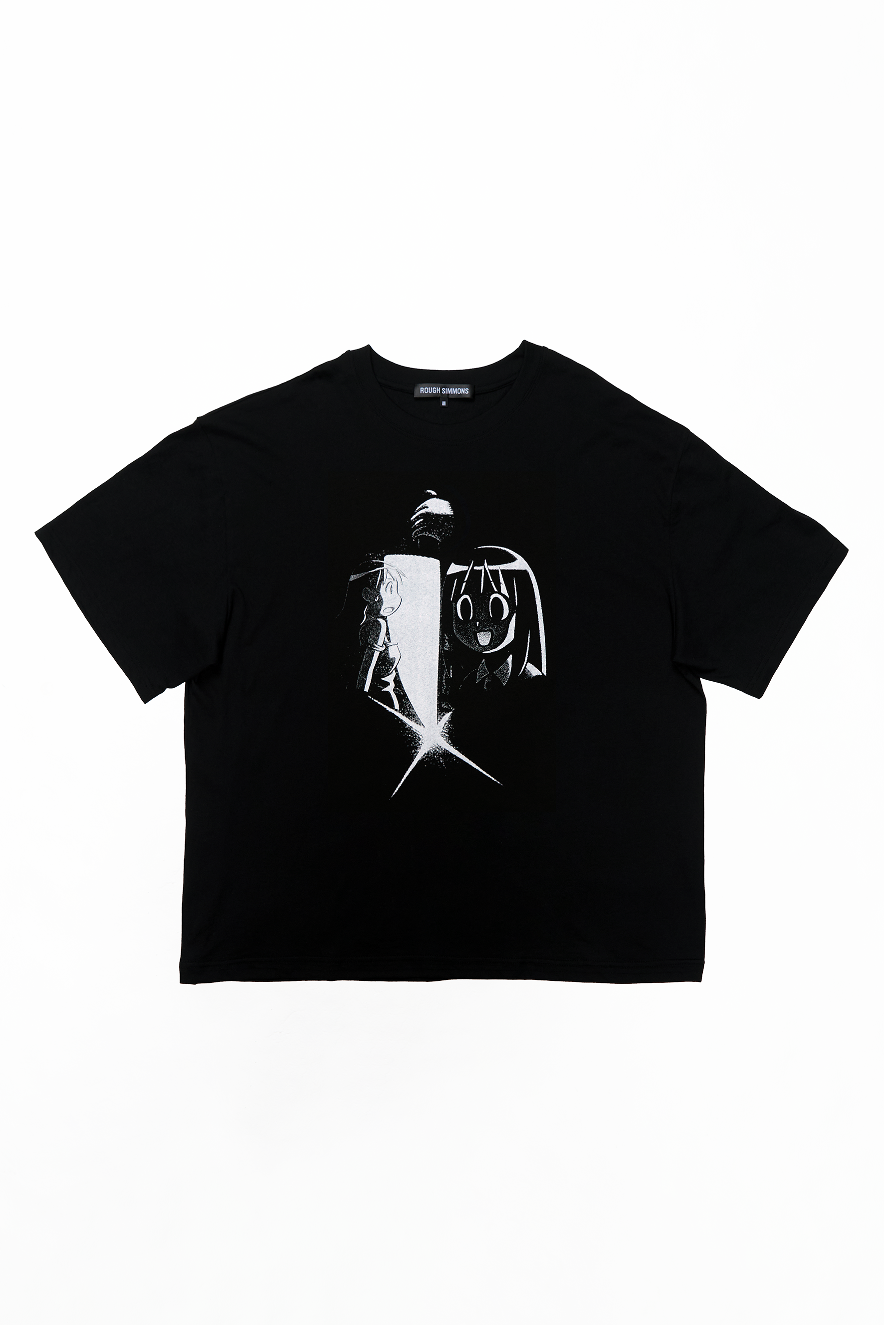 Large screenprint, relaxed wide fit with soft sheer black cotton jersey fabric.